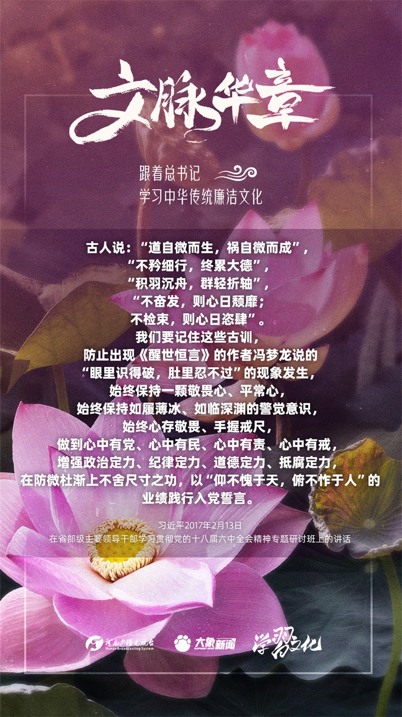 中華優(yōu)秀傳統(tǒng)文化蘊(yùn)含著豐富的廉潔文化,習(xí)近平總書記曾指出:沒有中華優(yōu)秀傳統(tǒng)文化、革命文化、社會主義先進(jìn)文化的底蘊(yùn)和滋養(yǎng),信仰信念就難以深沉而執(zhí)著??倳洺3R?jīng)據(jù)典,教育引導(dǎo)廣大黨員干部正心修身,涵養(yǎng)文化,守住為政之本。讓我們一起跟著總書記學(xué)習(xí)中華傳統(tǒng)廉潔文化。今天推出第三期。