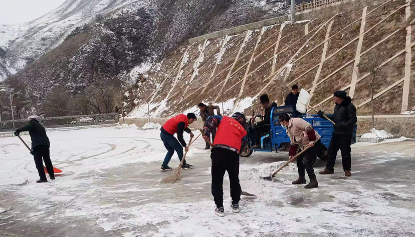 2月7日,農(nóng)歷大年初七,伴隨著凜冽的寒風(fēng),卓尼縣柳林鎮(zhèn)東石溝村氣溫驟降,雪花紛紛揚(yáng)揚(yáng)地飄落,厚厚地積雪給人民群眾的生活帶來(lái)諸多不便。甘肅工程咨詢(xún)集團(tuán)駐村幫扶工作隊(duì)在鎮(zhèn)黨委的統(tǒng)一部署下,不畏嚴(yán)寒,迅速投入到環(huán)境衛(wèi)生整治、融化結(jié)冰路面和清掃積雪活動(dòng)中。