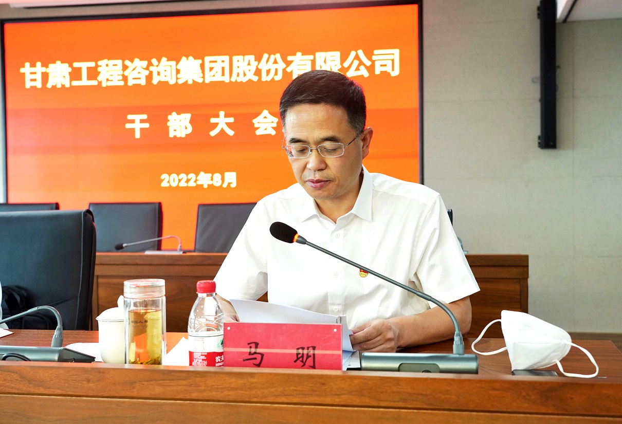 8月2日,甘肅工程咨詢集團(tuán)召開干部大會(huì),宣布省委關(guān)于集團(tuán)黨委主要負(fù)責(zé)人任免決定:馬明同志任甘肅工程咨詢集團(tuán)股份有限公司黨委書記,宋忠慶同志不再擔(dān)任甘肅工程咨詢集團(tuán)股份有限公司黨委書記職務(wù)。
