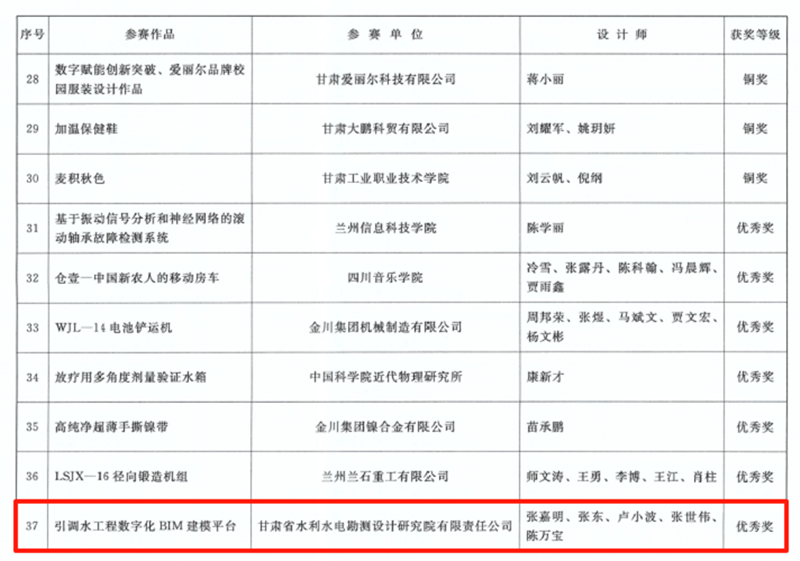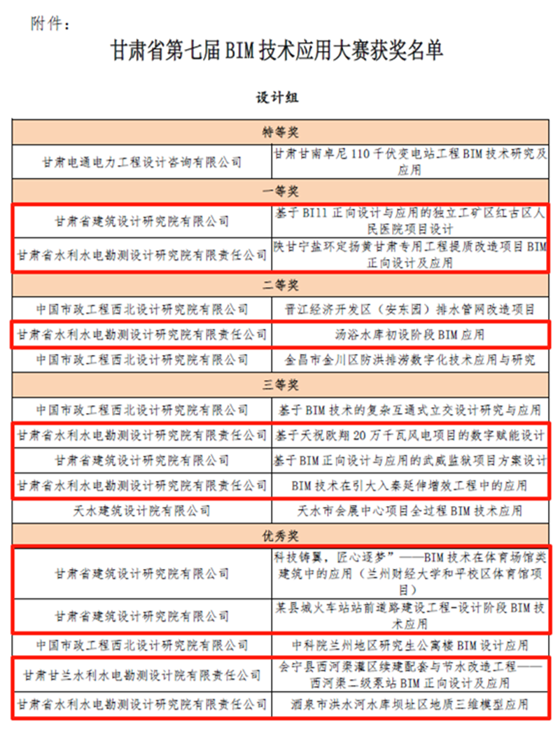 近日,甘肅省第五屆“創(chuàng)新杯”工業(yè)設(shè)計(jì)大賽、第十七屆全省職工優(yōu)秀技術(shù)創(chuàng)新成果獎(jiǎng)和甘肅省第七屆BIM技術(shù)應(yīng)用大賽的評選結(jié)果相繼公布,甘肅工程咨詢集團(tuán)15項(xiàng)技術(shù)和研究成果獲獎(jiǎng)。