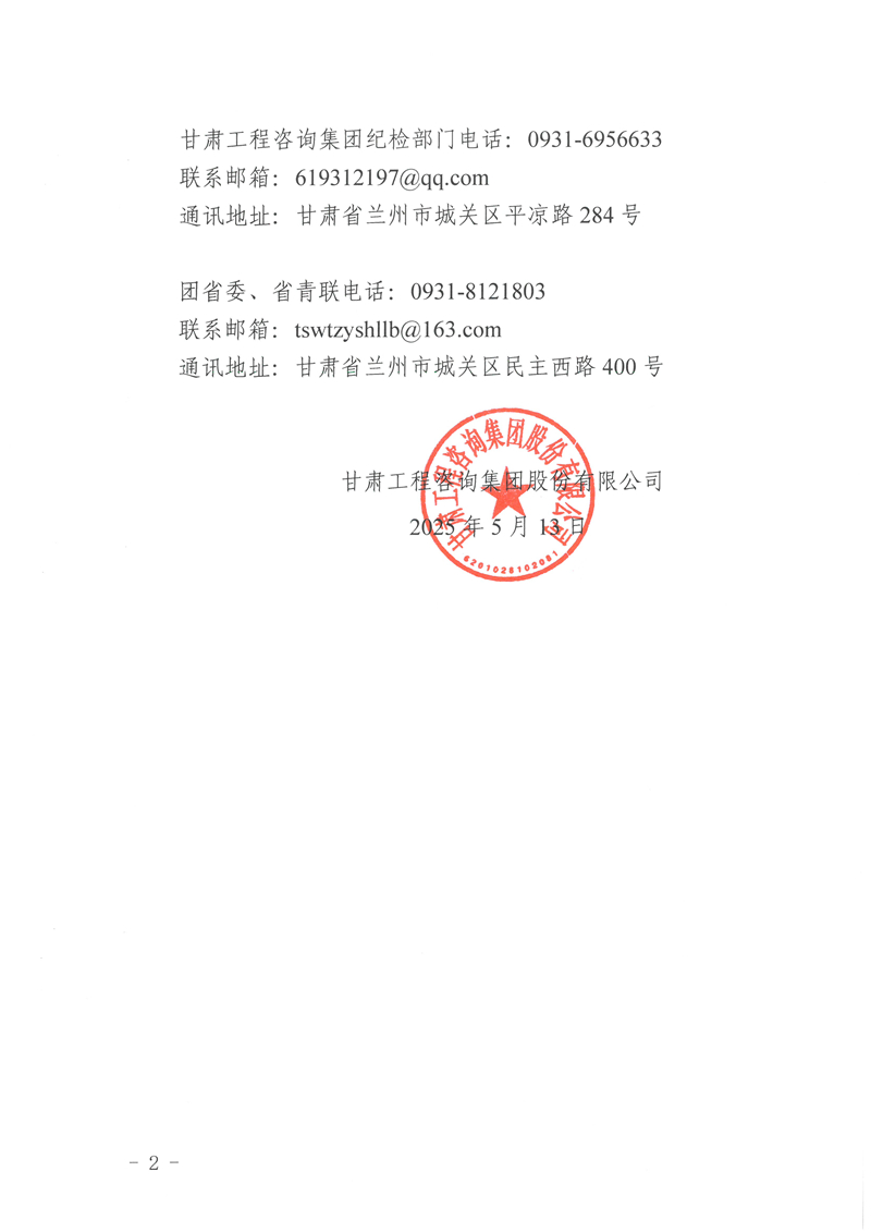 甘肅工程咨詢集團(tuán)股份有限公司關(guān)于甘肅青年五四獎(jiǎng)?wù)拢w)、甘肅省優(yōu)秀共青團(tuán)干部擬推薦對(duì)象的公示