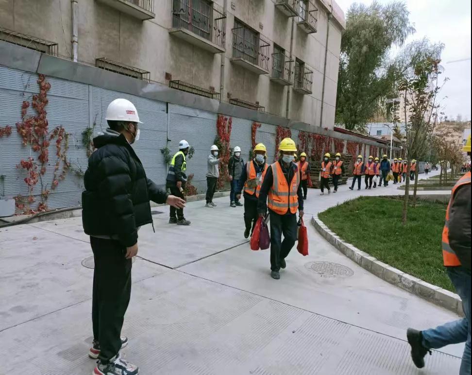施工現場因勞務人員體量大(高峰值有1300人同時施工)、組織工作難度大、現場需解決的問題較多,監(jiān)理組負責人張昕朗、總監(jiān)代表柳曉恩、亢巖多次組織召開專題會議,總結經驗,對施工單位疫情防控工作提出具體做法要求和建議:對施工現場進行全封閉式管理,上、下班由各班組負責人帶領施工人員列隊有序進出現場,回居住點后不得擅自外出;嚴禁集中或外出就餐,飯食由各班組安排1-2人,統(tǒng)一采購后分發(fā);協(xié)助施工單位積極組織工人進行核酸檢測,并有序組織各分包單位分批次上下班和就餐;往返工作生活區(qū)所有工人穿戴反光馬甲,佩戴口罩測量體溫;做好疫情期間施工人員的心理疏導工作。