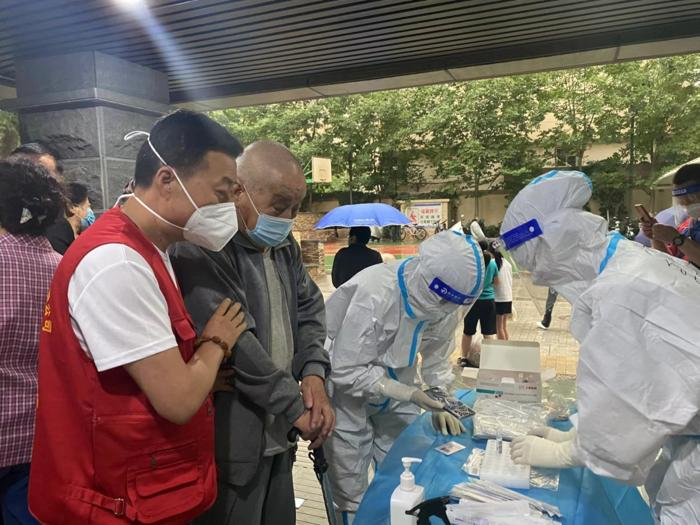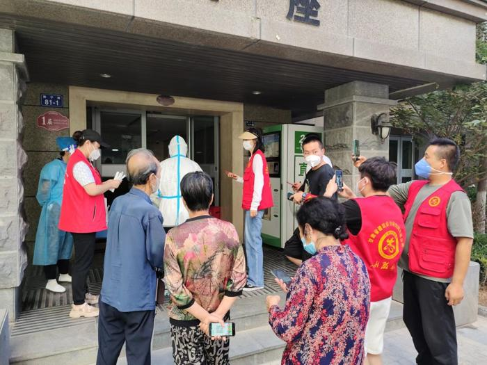盛元小區(qū)一共有5個單元,500多戶,2000多人;新港城小區(qū)屬于城關(guān)區(qū)比較大的居民小區(qū),分為ABCDE五個區(qū),共有300多個單元,5200多戶,16000多人居住。面對這些情況,陳萬國、李朋袀和白萬景等志愿者沖在前面,維持檢測秩序,布置核酸檢測點位,分發(fā)甘肅抗疫中藥包,投放樓棟垃圾,匯總登記問題并與社區(qū)和醫(yī)務(wù)人員溝通逐一解決。接受核酸檢測的隊伍中,有上至八九十歲的老人,下至三四歲的孩童,還有行動不便的病人,他們總是無微不至,耐心引導(dǎo),尤其在遇到一些行動不便的老人和病人時,他們主動上前攙扶,把貼心的溫暖送給每一名群眾。