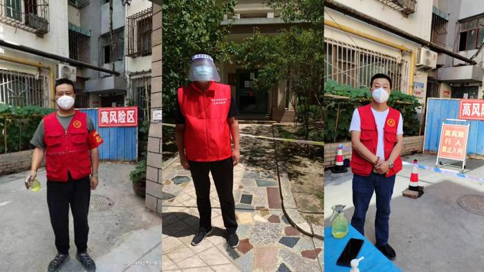 疫情發(fā)生后,陳萬國、李朋袀、白萬景三人克服家里老人無人照顧、孩子尚小的個人困難,第一時間向建筑設(shè)計院黨委申請,志愿成為防疫“戰(zhàn)士”,義無反顧地投入到了酒泉路街道南稍門社區(qū)盛元小區(qū)和雁北路街道大橋社區(qū)新港城小區(qū)緊張的防疫工作中。
