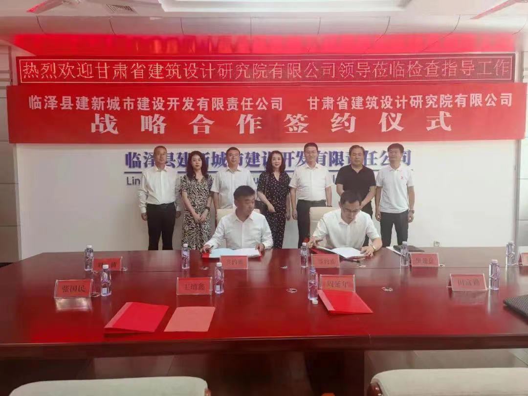 近日,臨澤縣建新城市建設(shè)開發(fā)有限責(zé)任公司與甘肅省建筑設(shè)計研究院有限公司舉行戰(zhàn)略合作協(xié)議簽約儀式。臨澤縣副縣長周延年、住建局副局長王增鑫、臨澤縣建新公司黨支部書記田富勤,建筑設(shè)計院黨委書記李向軍,總經(jīng)理助理、設(shè)計二院院長樊建倉出席簽約儀式。