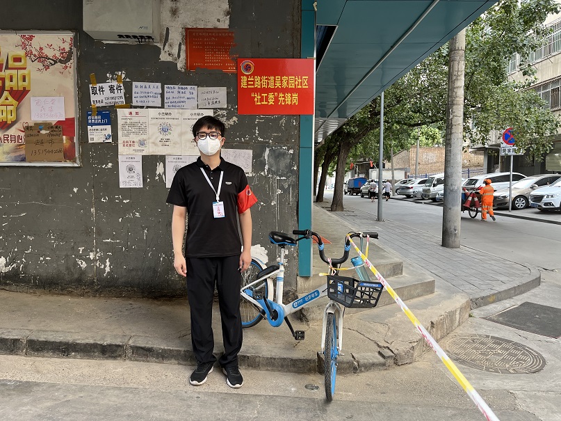 “你好,目前這里不允許人員進出,請問有什么事嗎?”這是志愿者權(quán)浩每天重復(fù)無數(shù)次的提問。本輪疫情發(fā)生以后,他就主動請纓,根據(jù)安排前往吳家園社區(qū)家具四場值守點進行卡點值守任務(wù)。他所負責(zé)值守的卡點情況復(fù)雜,封控區(qū)域內(nèi)居民、租戶、獨居老人較多,卡口附近有藥店、菜鋪,因此很多居民都想外出采購。每每遇到這樣的情況,他總是耐心地向居民解釋防疫政策并盡力提供幫助。權(quán)浩表示,疫情當(dāng)前,作為社區(qū)居民健康的守護者,深知自身工作的重要性和肩負的責(zé)任,面對各種困難,他都會積極協(xié)調(diào)、認真處理。“工作中我們微笑多一些、態(tài)度好一點,居民的理解和信任也就多一些。我會爭取讓群眾理解和配合我們的工作,我相信在大家的共同努力下,疫情終會退去?!焙唵蔚脑捳Z中,透出的是他樂觀積極的心態(tài)和甘于奉獻的決心。