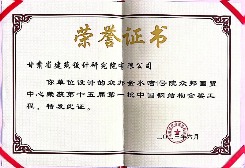 近日,從中國(guó)建筑金屬結(jié)構(gòu)協(xié)會(huì)傳來喜訊,由省建筑設(shè)計(jì)院總建筑師、甘肅省工程勘察設(shè)計(jì)大師馮志濤領(lǐng)銜團(tuán)隊(duì)設(shè)計(jì)的“眾邦國(guó)貿(mào)中心”榮獲“第十五屆第一批中國(guó)鋼結(jié)構(gòu)金獎(jiǎng)工程”榮譽(yù)稱號(hào)。