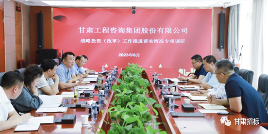6月13日,甘肅工程咨詢集團(tuán)黨委委員、副總經(jīng)理劉立昱,董事會秘書柳雷,戰(zhàn)略投資部(改革辦)部長馬靈會一行到招標(biāo)咨詢集團(tuán)對戰(zhàn)略投資(改革)工作推進(jìn)落實情況、董事會建設(shè)和運行情況開展專項調(diào)研。
