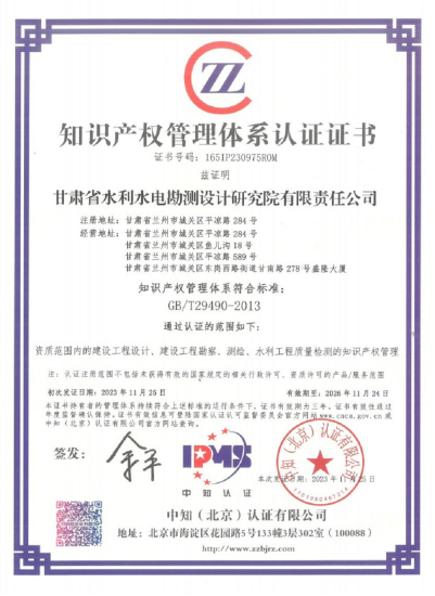 近日,省水電設(shè)計院順利通過《企業(yè)知識產(chǎn)權(quán)管理規(guī)范》(國家標準GB/T 29490-2013)的認證評審工作,取得《知識產(chǎn)權(quán)管理體系認證證書》,標志著在知識產(chǎn)權(quán)創(chuàng)造、運用、管理和保護方面邁上新臺階。