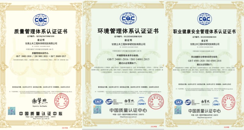 近日,經中國檢驗認證集團甘肅有限公司的嚴格評審,土木工程院及子公司“蘭州金建工程建設監(jiān)理有限公司”均順利通過了GB/T 50430(工程建設施工企業(yè)質量管理體系)、ISO14001(環(huán)境管理體系)、ISO45001(職業(yè)健康安全管理體系)認證并取得證書。