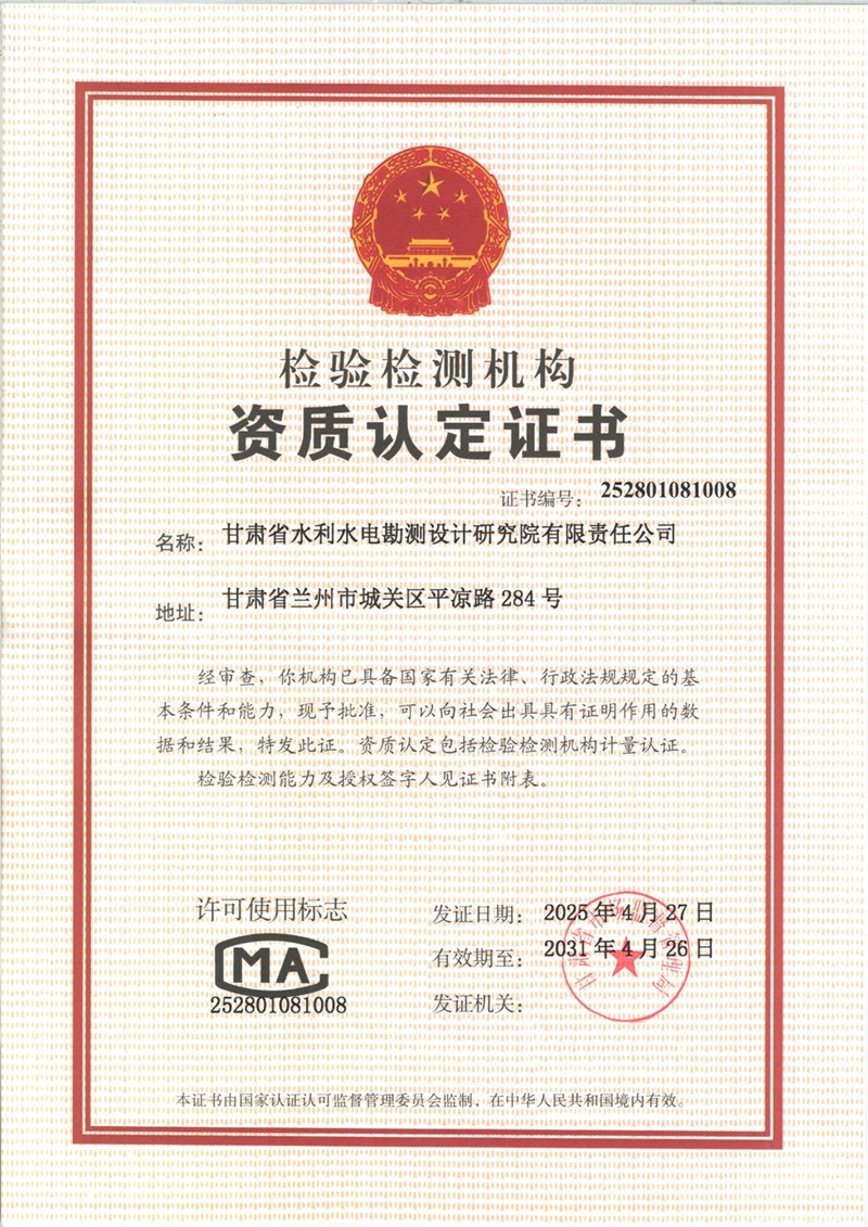 近日,省水電設(shè)計院檢測業(yè)務(wù)順利通過CMA資質(zhì)認定,檢測能力實現(xiàn)跨越式提升。此次認定獲批巖土工程、混凝土工程、金屬結(jié)構(gòu)、機械電氣、量測、工程材料、生活飲用水等7大類核心檢測資質(zhì),檢測參數(shù)由377項擴容至2606項,并同步完成場地變更與資質(zhì)復(fù)審工作。這一成果的取得,標(biāo)志著公司在水利、公路、生活飲用水等領(lǐng)域和專業(yè)的檢測能力取得重大突破。