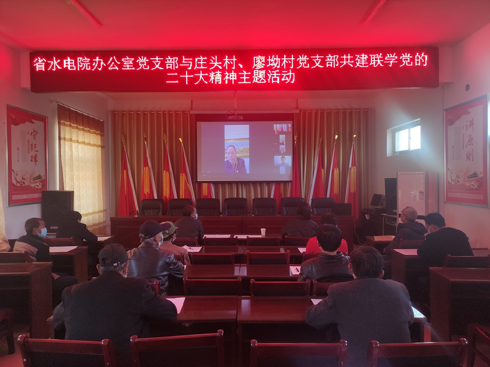 為持續(xù)促進黨的二十大精神學(xué)習(xí)貫徹走深走實,使黨的二十大精神進村入戶、深入人心,11月22日,甘肅省水利水電勘測設(shè)計研究院有限責(zé)任公司辦公室黨支部與幫扶村西峰區(qū)莊頭村黨支部、廖坳村黨支部開展共建聯(lián)學(xué)黨的二十大精神主題活動。